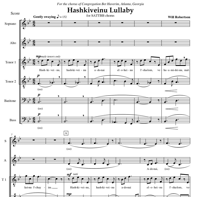 Hashkiveinu Lullaby (SATTBB) *5 Copies