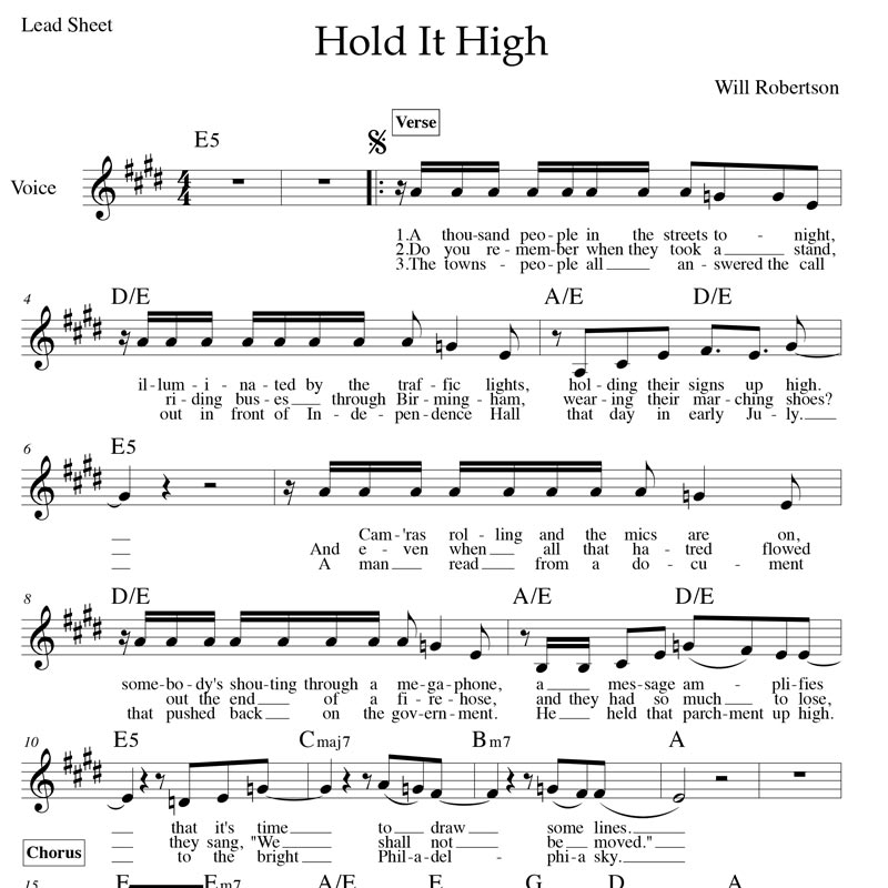A song to give us strength, and to remind us that the right to protest and to tell our leaders what we think is core to what it means to be an American – and always has been. To be performed with optional band (not notated).