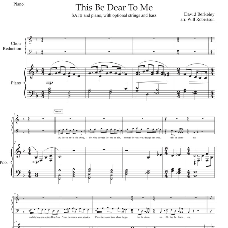 A heartfelt, soaring environmental hymn by singer/songwriter David Berkeley, arranged by Will Robertson. Can be played with guitar instead of piano; optional guitar, bass and string quartet parts available.